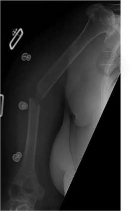 Most humeral shaft fractures do not require surgery. If you don't require surgery you will be fitted with a humeral brace (a moulded plastic brace) and a sling. This helps to stabilise your broken bone and allows you to move your elbow gently to avoid that getting stiff while your fracture heals. Approximately 90% of well-selected humeral shaft fractures will heal without surgery. It takes approximately 12 weeks for bony healing in most cases.
